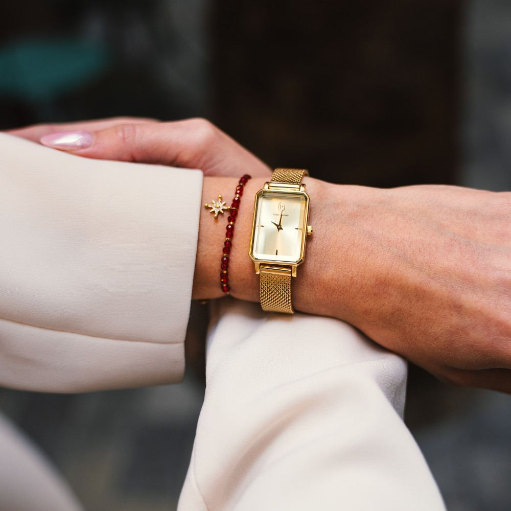 Sárga arany színű PVD bevonatú polírozott tok.