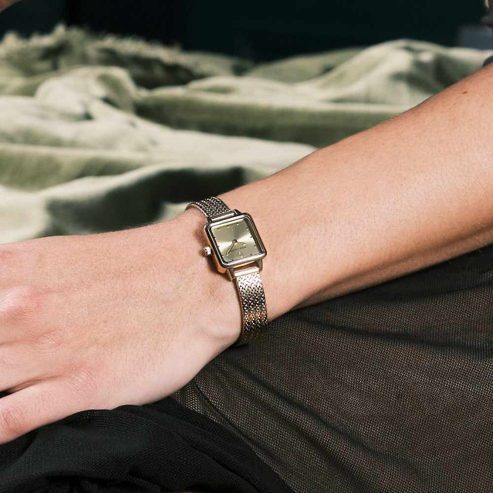 Sárga arany színű PVD bevonatú polírozott négyszögletes óratok.