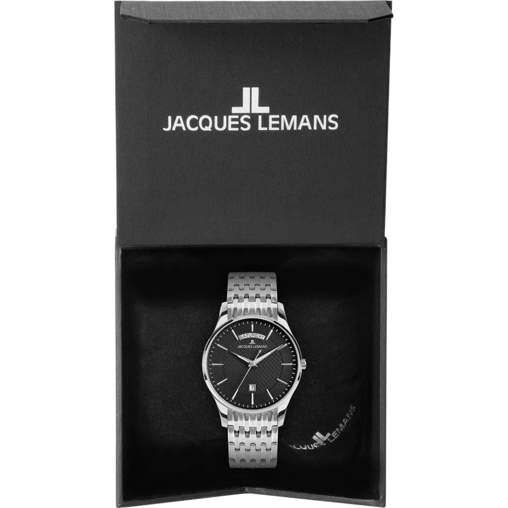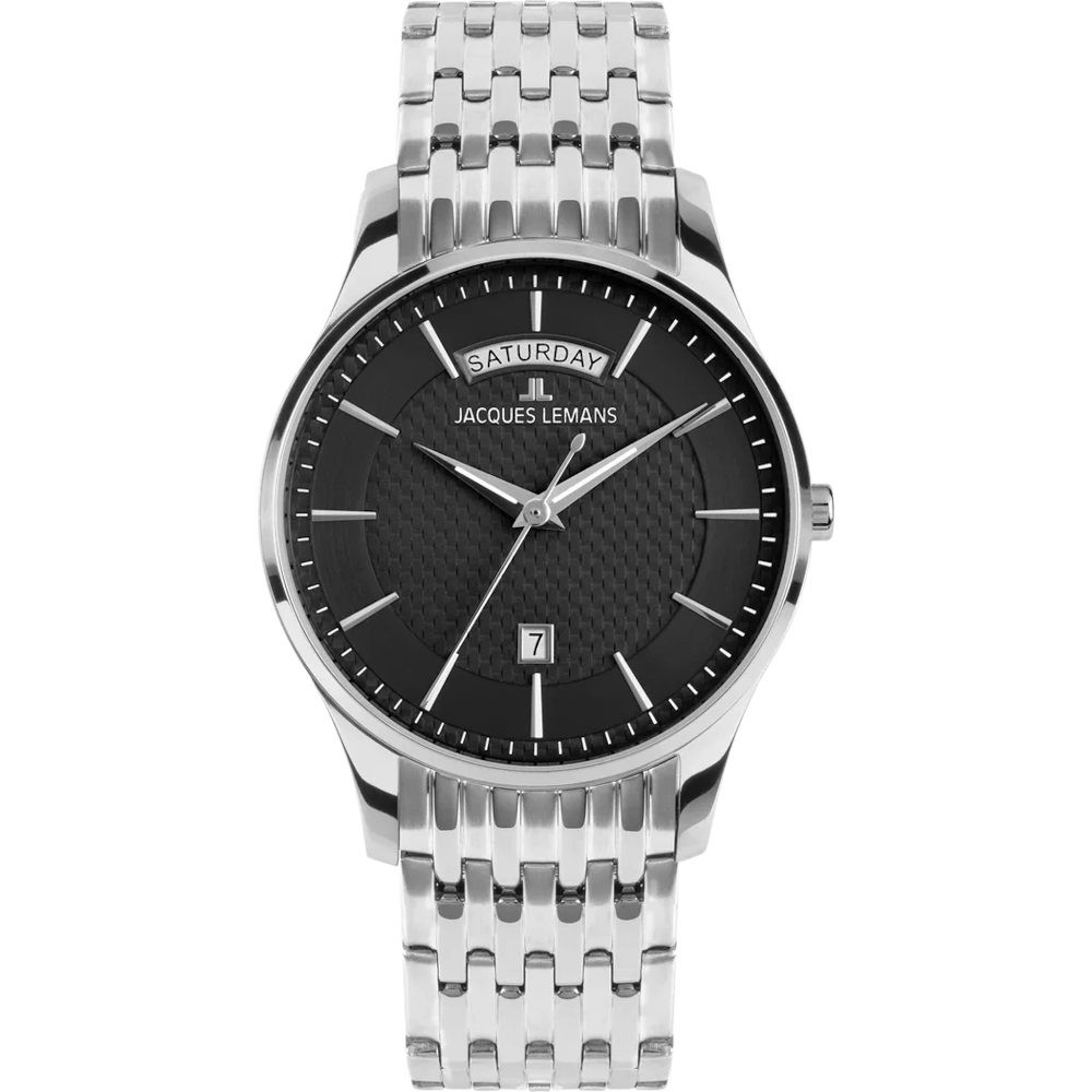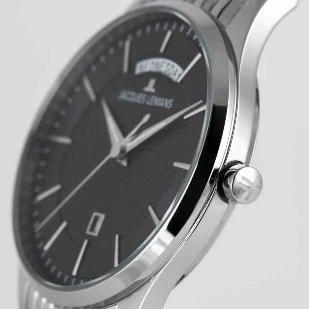 Fekete színű dombornyomott mintázatú számlap, "day-date" kijelzéssel.