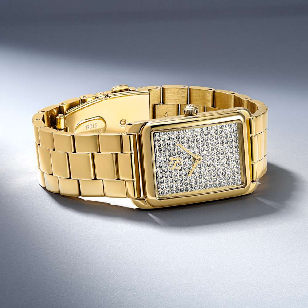 18 karátos sárga arany bevonatú (IP bevonat) 100% rozsdamentes acél karóra.